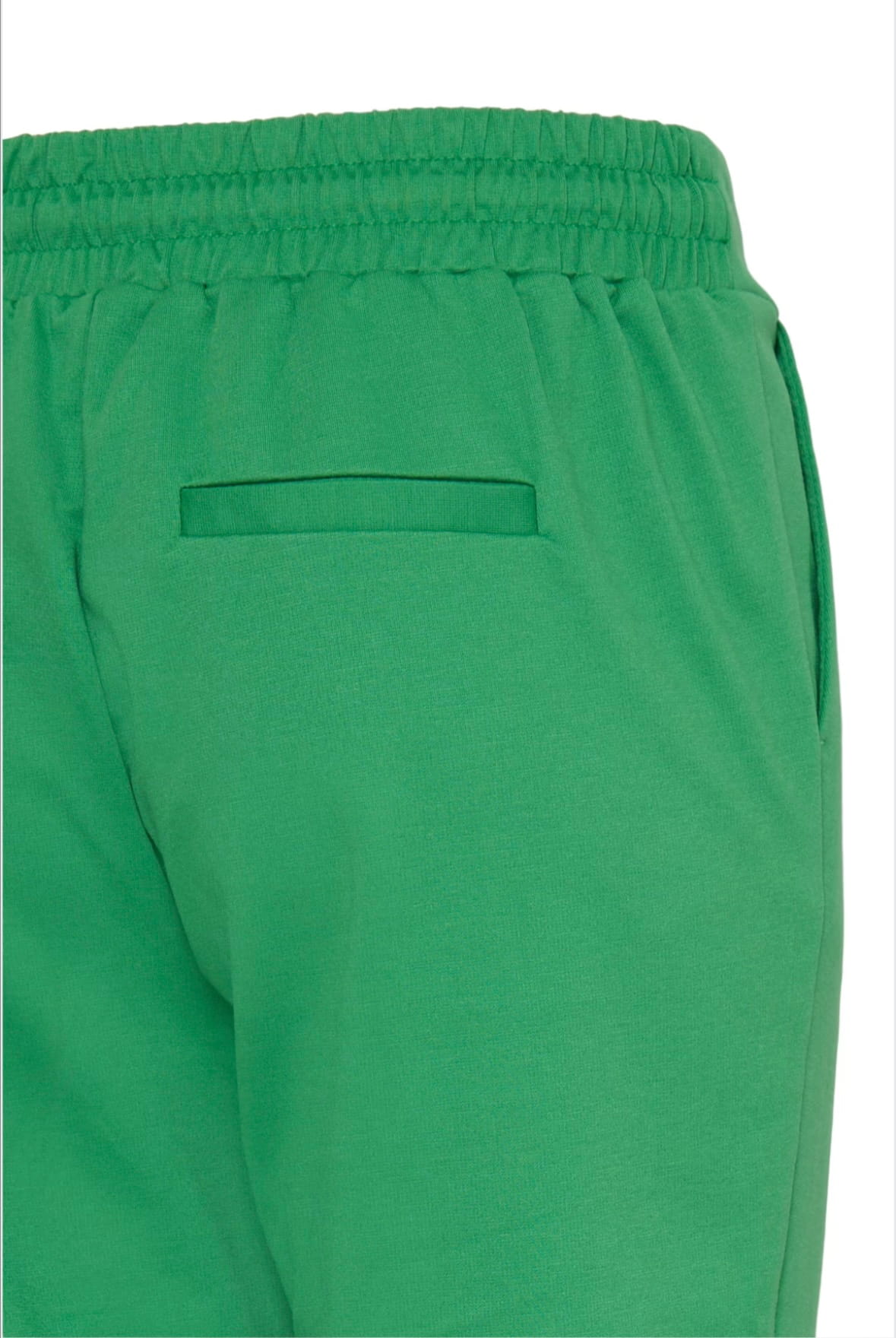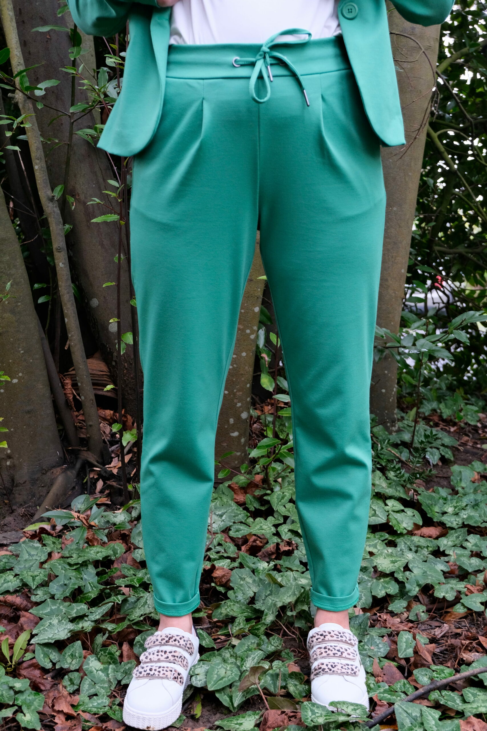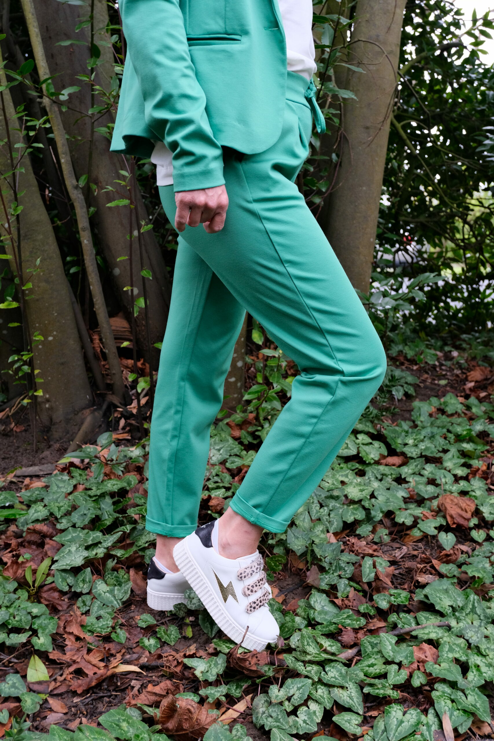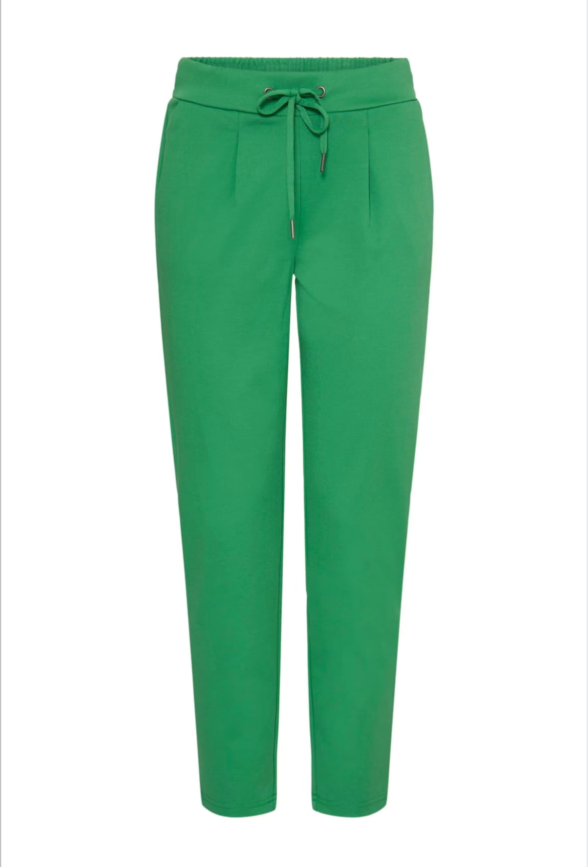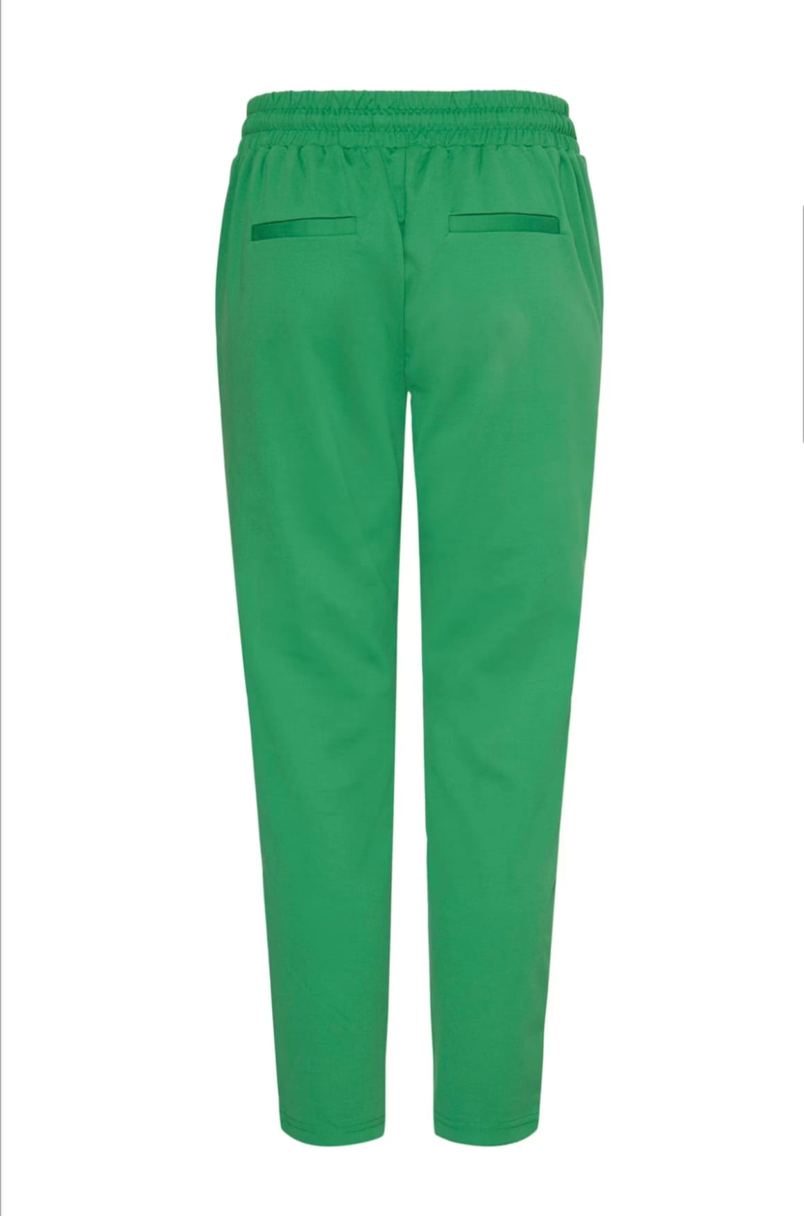 Le pantalon Rizetta fuselé présente une taille mi-haute élastiquée avec un cordon de serrage visible et des poches latérales avant.