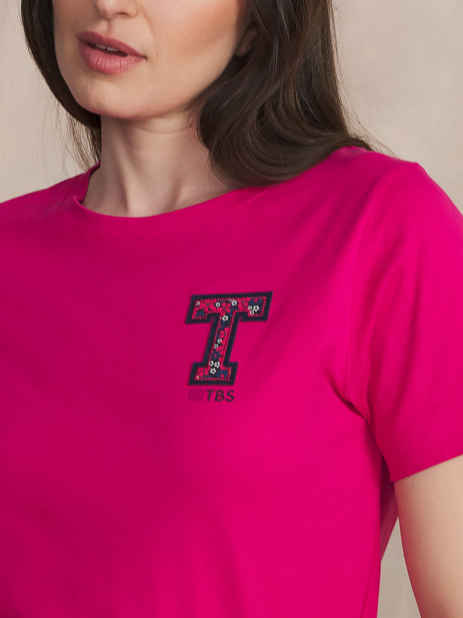 Le t-shirt manches courtes AMINATEE framboise à manches courtes pour une allure vitaminée. Parfait pour les beaux jours.